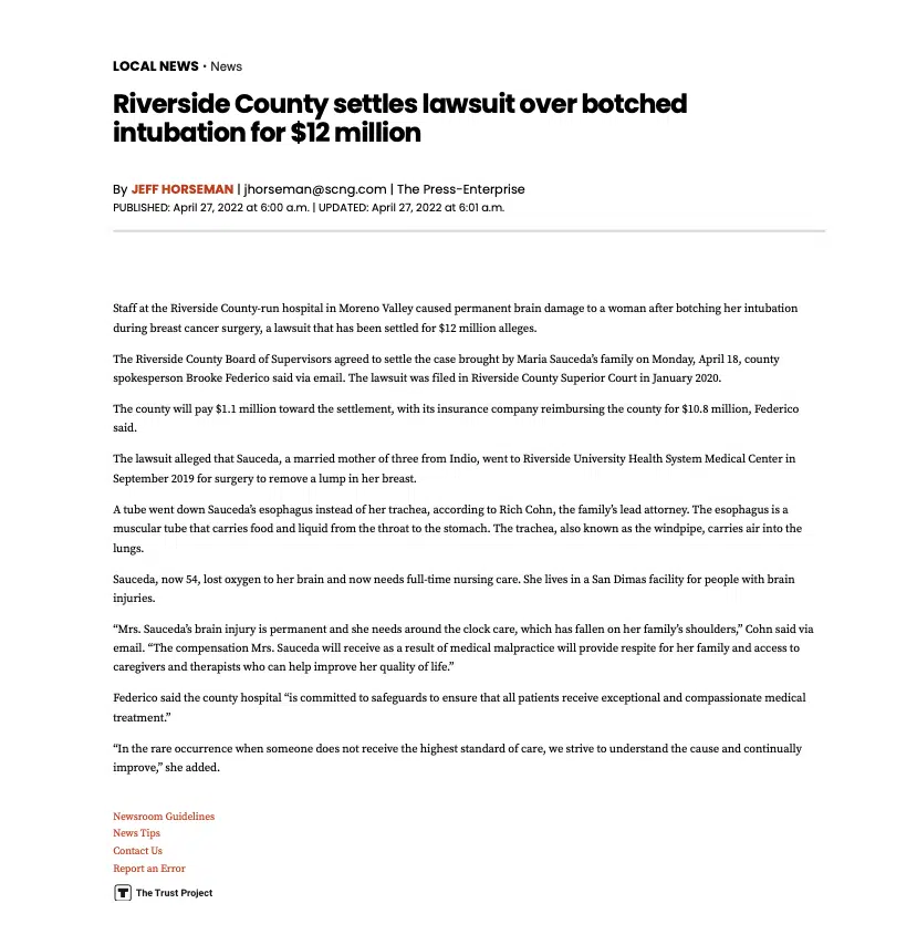 Case: Maria Sauceda vs. Riverside University Health System – Medical Center