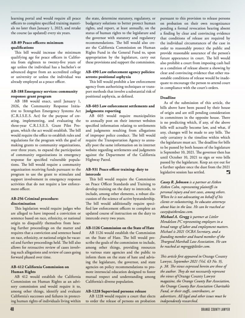 Casey Johnson Co-Authors Article in Orange County Lawyer Magazine